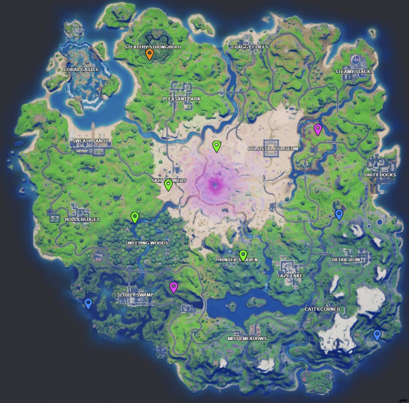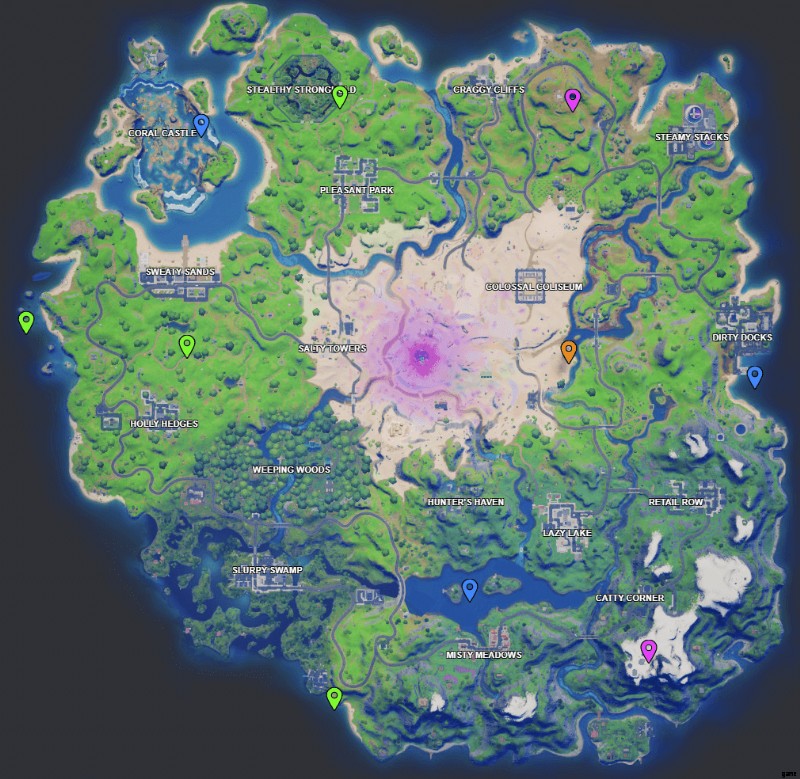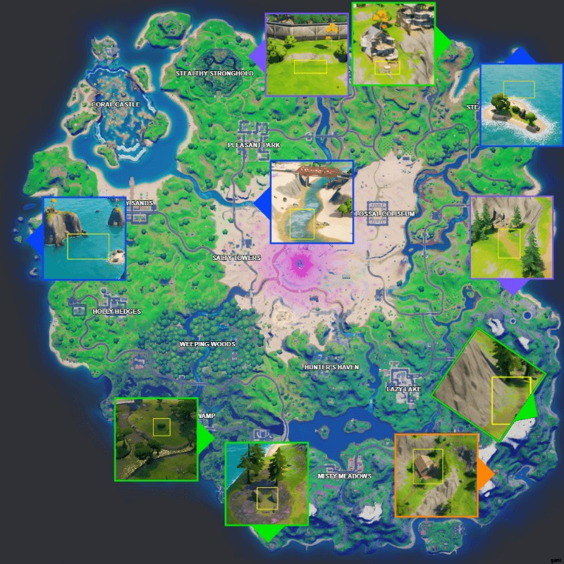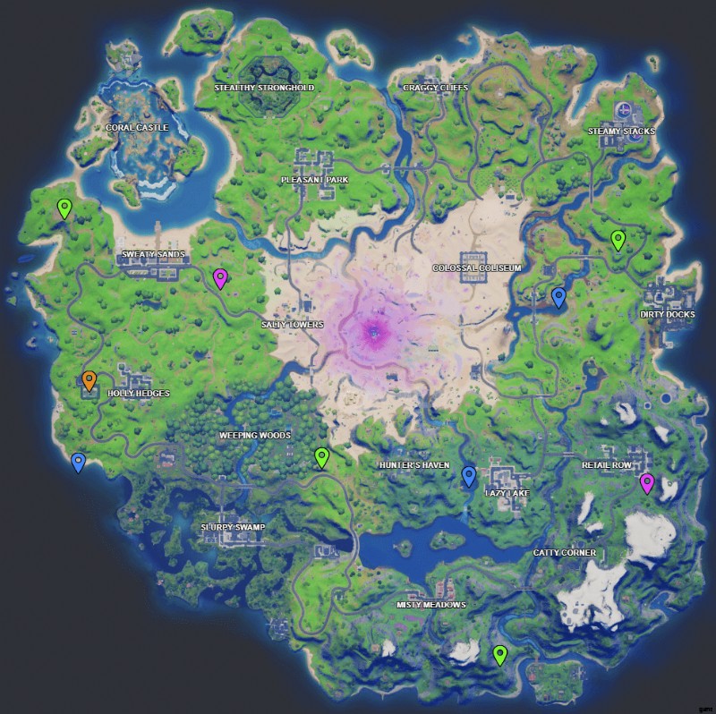 ゼロ ポイント マップ上には毎週 10 枚の XP コインがあり、グリーン、ブルー、パープル、ゴールドの 4 つの異なる色があります。これらのコインを見つけることで得られる XP は、それらの色の希少性に応じて異なります。そのため、ゴールド XP コインを取得すると、グリーン コインを見つけるよりも多くの利益が得られます。
