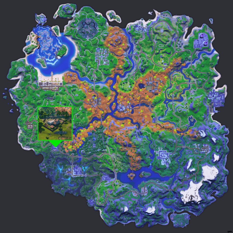 Durr Burger は、マップの南西セクション、Slurpy Swamp の北西にあります。下の画像を使用して、正確な位置を確認してください。
