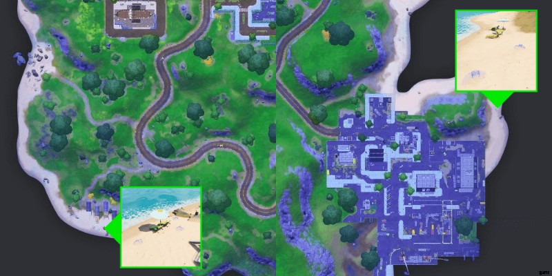 2 つ目のクエストは、3 つのサンドキャッスルを破壊することです。これらには 2 つの異なる場所もあり、下の地図でそれらをマークしています。