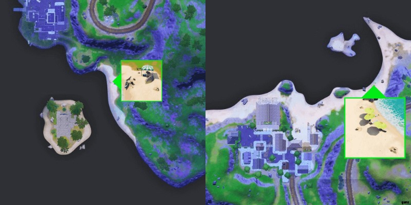 最初に行う必要があるクエストは、3 つのサンドキャッスルを構築することです。これらには 2 つの異なる場所があり、下の地図でそれらをマークしています。