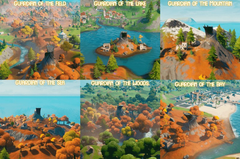 シーズン 6 マップには 7 つの新しい名所があります。ただし、そのうちの 6 つはほとんど同じです。もちろん、中心の塔の周りに六角形に配置された 6 つの小さな尖塔について話しています.