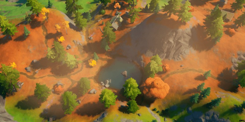 Primal Pond は最後の新しい POI です。 Hunter's Haven が池と多くの原始的な環境に置き換わっていることがわかります。ただし、この POI の特異な点の 1 つは、ここに恐竜の卵があることです。ラプターズがフォートナイトに登場することが確認されました 近い将来、これがスポーン場所の 1 つになると予想しています。