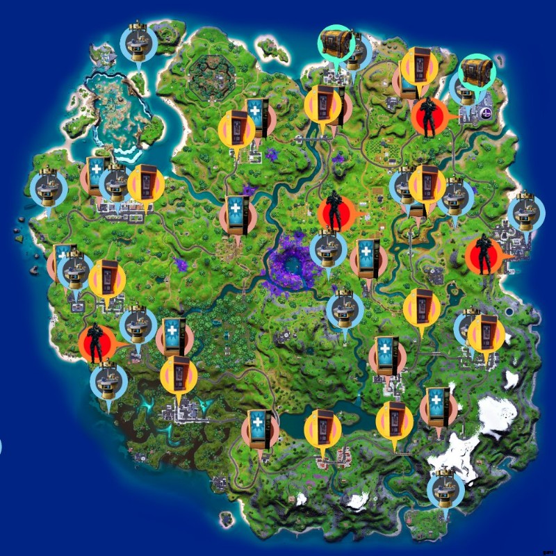 以下のマップは、今週のクエストのすべてのスポーンの場所と特定の場所を示しています。詳細が必要な場合は、地図の下の指示に従ってください。