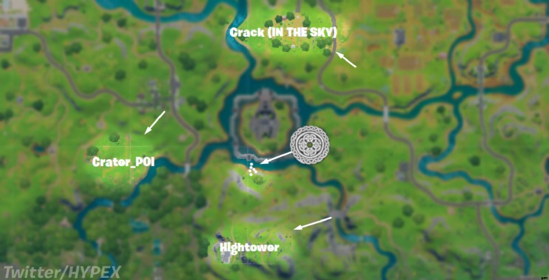 次のツイートからわかるように、イベントの初期段階は The Agency が中心になります。空にひびが入り、新たなクレーター POI がエージェンシーの南にルーン文字で表示され、さらに南に「ハイタワー」エリアができる可能性があります。