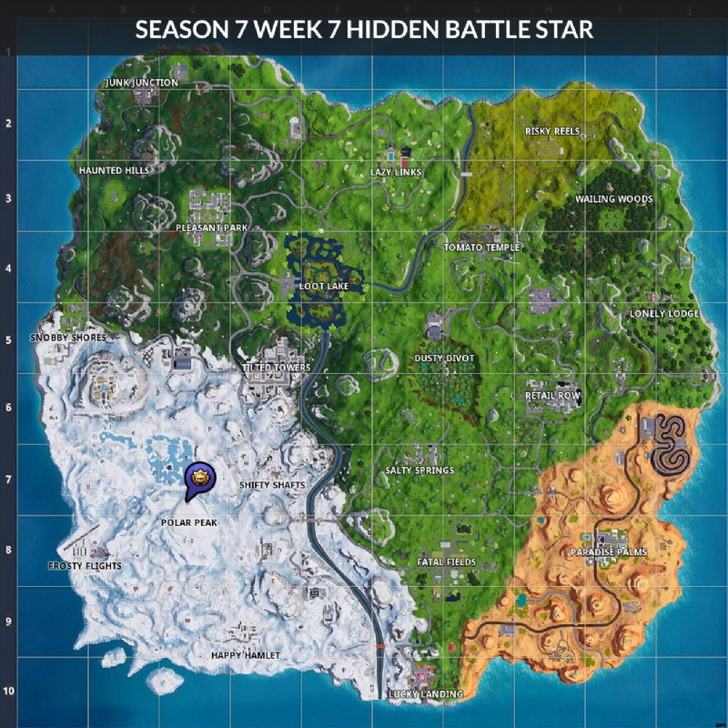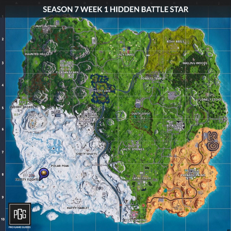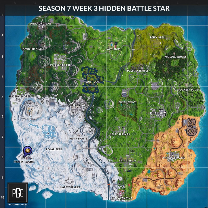 フォートナイト シーズン 7 隠し/シークレット バトル スターの場所 (スノーフォール チャレンジ)