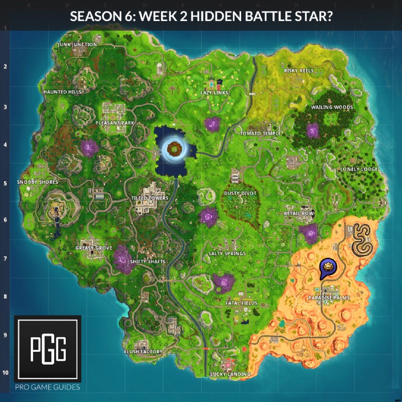 シーズン 6:第 1 週の隠されたバトル スターの場所