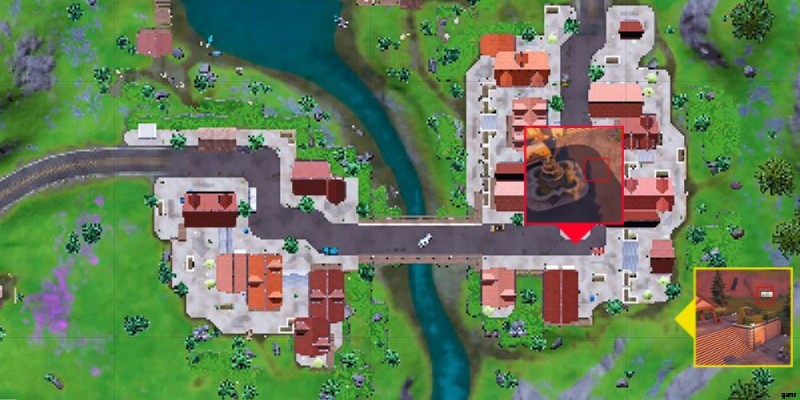 - 探知機を装備: ディテクターは、町の東半分にある噴水の横に装備できます。上の地図の赤い四角で示されています。