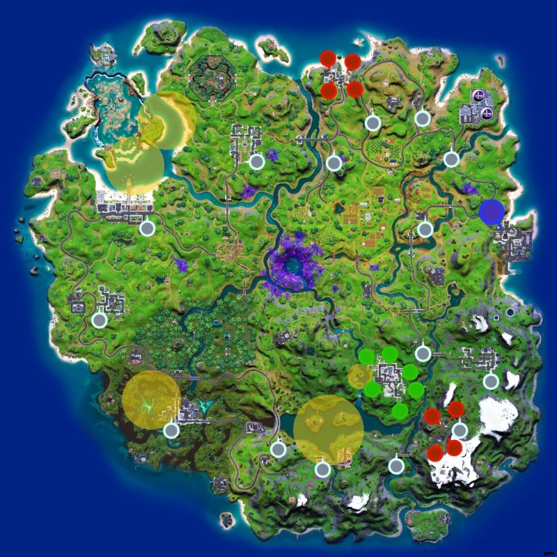 以下のマップは、今週のレジェンダリー クエストのすべてのスポーンの場所と特定の場所を示しています。詳細が必要な場合は、地図の下の指示に従ってください。