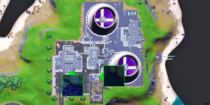 下の地図は、Steamy Stacks の俯瞰図とそこにある本の位置を示しています。これはあらゆる試合の開始時に人気のあるドロップ ポイントであるため、戦闘を避けたい場合は、最初のストーム サークルの後にドロップ ポイントに移動することをお勧めします。ただし、書籍同士の距離が非常に近いため、このクエストを完了するには、Steamy Stacks が最適な場所です。