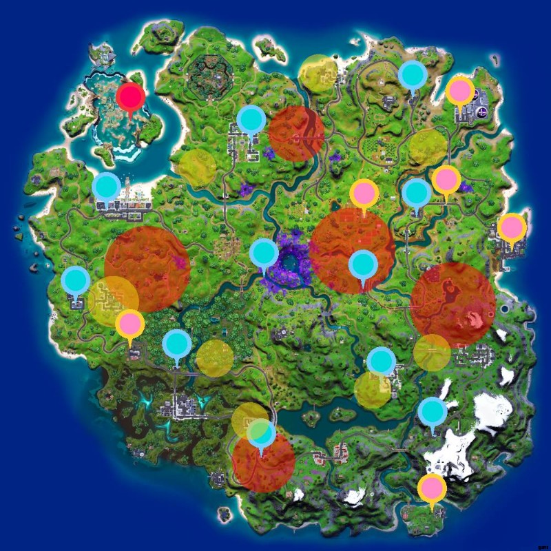 以下のマップは、今週のクエストのすべてのスポーンの場所と特定の場所を示しています。詳細が必要な場合は、地図の下の指示に従ってください。
