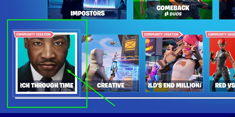 Fortnite は、マーティン・ルーサー・キングの「私には夢がある」という演説に捧げられた新しい LTM を追加しました。これは事前の通知がほとんどない突然のリリースだったため、多くのプレイヤーがプレイ方法を理解するのに苦労しています。幸いなことに、世界で最も偉大な英雄の 1 人と一緒に公民権運動に参加して祝うための簡単なプロセスがあります。