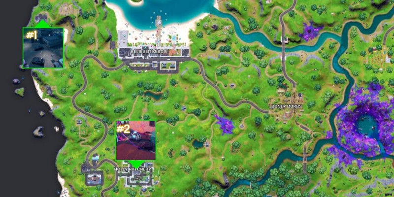 上の画像のステップ 1 で、IO カーをピックアップする場所を確認できます。 IO 基地は、海に面した海岸にある、ビリーバー ビーチの真西にあります。画像のステップ 2 で、IO カーを降りる場所を確認できます。このルートであれば、試合開始から数分でクエストをクリアできるはずです。ディスカバリー ディッシュは一般的なドロップ ポイントではないため、これも比較的安全な方法です。