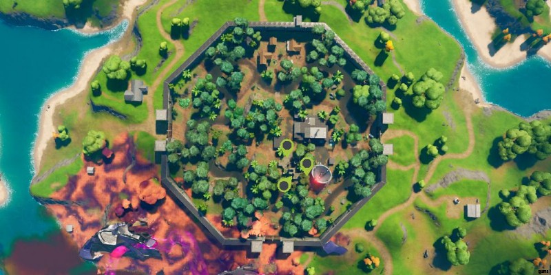 最初に行う必要があるのは、適切な場所に移動することです。ステルス要塞は以前は名前の付いた場所でしたが、最近のシーズンでその名前がマップから削除されました。プレザント パークの北にあります。地図上で見逃すことはありません。