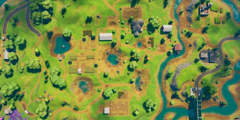 最初に行う必要があるのは、適切な場所に移動することです。 Corny Crops は、紫色の中央エリア (The Aftermath) のすぐ北東にあるマップ上の名前付きの場所です。