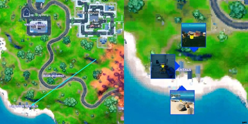 フォートナイトのレインボー レンタルでバナナイエローのボトルを見つける場所 |レインボー レンタルズはどこにありますか?