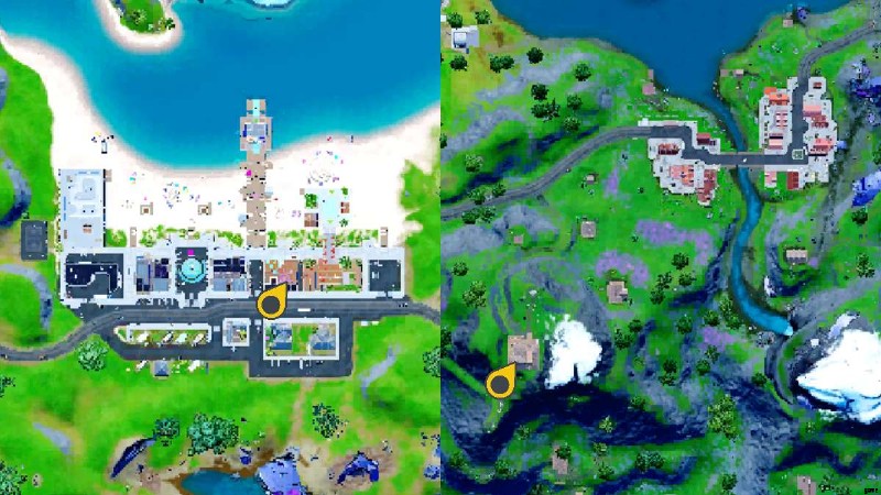 左側に、ミスティ メドウズの南西にある山のランドマークである Apres Ski のターンテーブルがある場所が見えます。右側に、ターンテーブルがビリーバー ビーチのどこにあるかが表示されます。