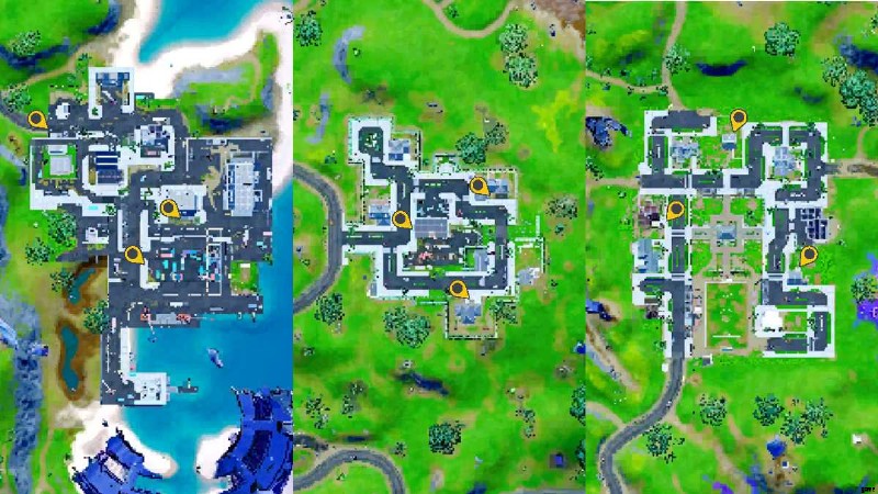 これを完了することができる場所は 3 つありますが、すべての場所に 3 つのスポットがあるため、そのうちの 1 つだけを訪れる必要があります。以下の地図では、それらすべてを見つけることができる場所を示しています.