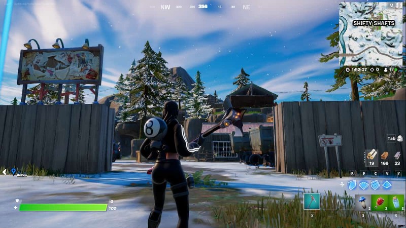 ずる賢いシャフト マップの中心の真上にあります .フォートナイト チャプター 2 シーズン 8 でプレザント パークがあった場所に正確に立っています。参考までに、プレイヤーは Logjam Lumberyard と Sleepy Sound POI の間に着陸する必要があります。
