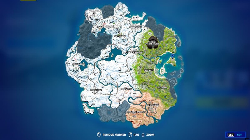 訪問者 永続的なスポーン場所があり、サンクチュアリの東にある最大の島にあります Fortnite チャプター 3 シーズン 1 で簡単に参照できるように、プレイヤーは上の画像をたどることができます。これにより、マップ上の訪問者の正確な位置が特定されます。