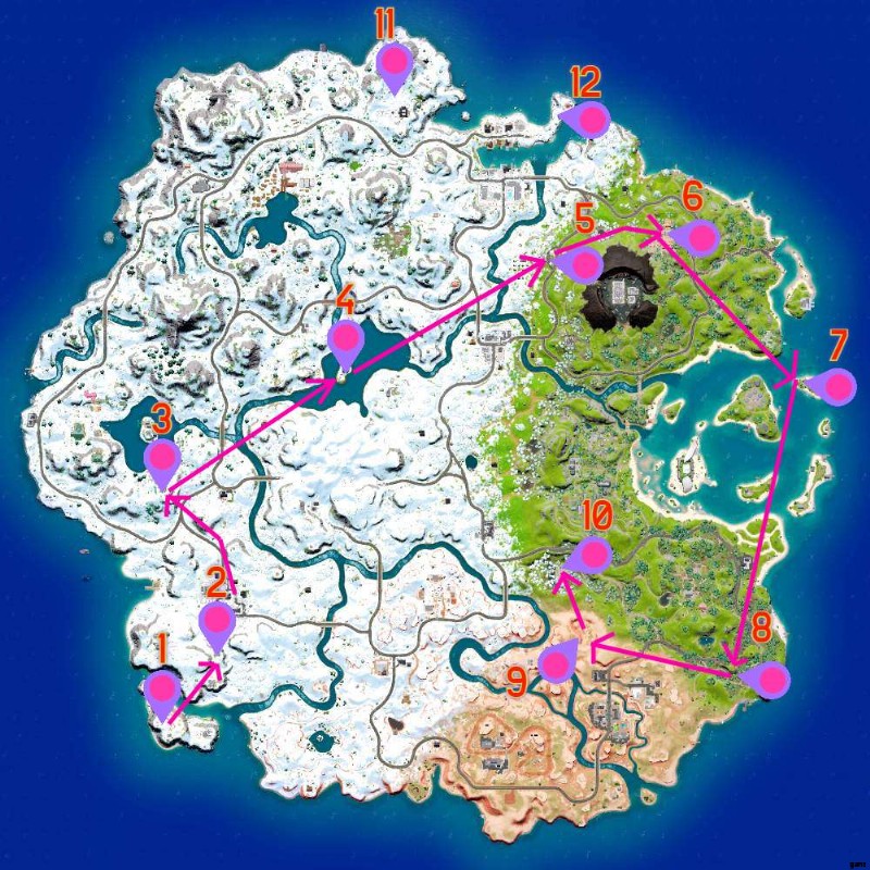 - ウィンドブレーカーから始めることをお勧めします。そこからジップラインに乗ってパワー タワーに行き、Greasy Grove に行って、残りの宝石の破片を運ぶ乗り物を集めます。