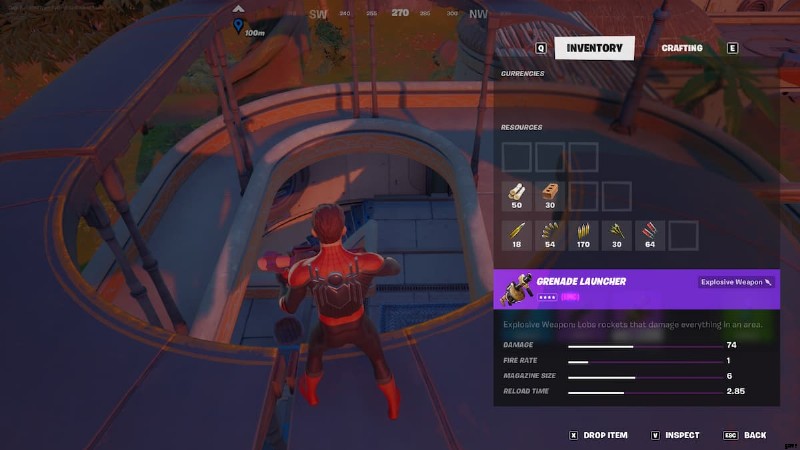 現在、グレネード ランチャーはレア チェストにのみスポーンします。 、およびサプライドロップ . サメを倒すことでもこの武器を入手できます 今シーズン。エピック バリアントは、プレイヤーがレア チェストで見つける最も一般的なグレネード ランチャーです。 2.85 秒のリロード速度で 74 の基本ダメージを与えます。
