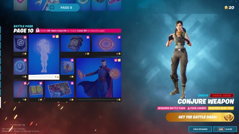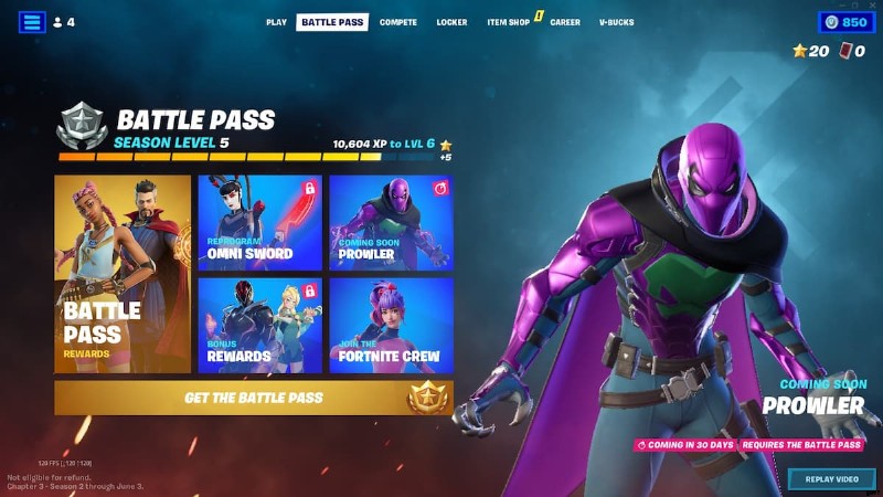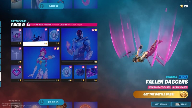 ボーナス報酬用の別のページと、すべてのプラウラー フォートナイト スキン報酬用のページもあります。ボーナス報酬ページにアクセスするには、最初の 10 バトル パス ページですべてのロックを解除する必要があります。 Prowler Fortnite スキンは、それに関連するクエストとともに後日公開されます。