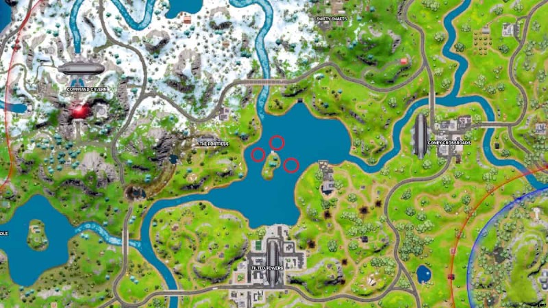 ルート レイク ランドマークは、フォートレス、ティルテッド タワーズ、コニー クロスロードの 3 つの主要な POI の間にあります。オムニ チップはルート レイクの水面に置かれ、プレイヤーはこれらをすばやく集めるために湖で泳がなければなりません。