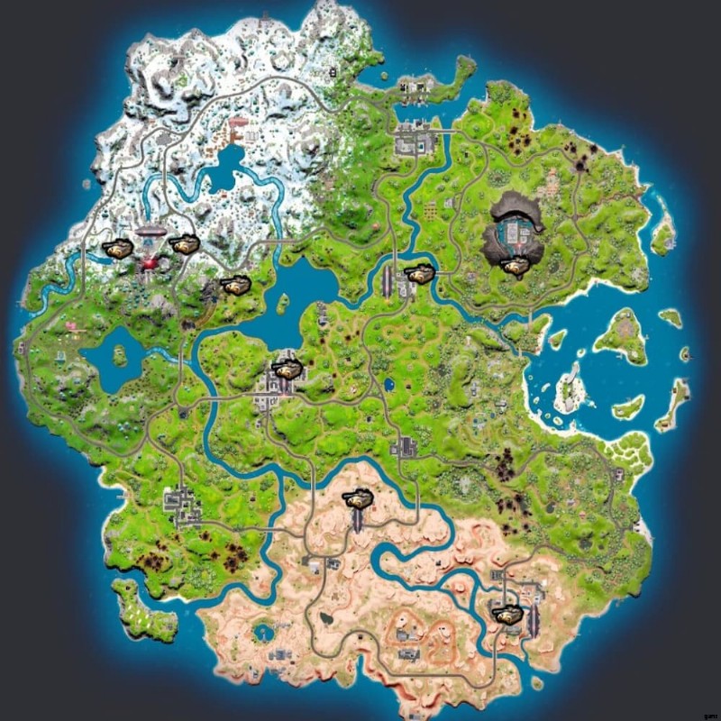 戦車を手に入れたので、これをセブン・アウトポストに届けなければなりません。当初、フォートナイト島には合計 7 つの前哨基地がありました。しかし、セブン・アウトポスト VI は地震後に破壊され、現在はディスパッチ・デポに置き換えられています。したがって、合計 6 つの前哨基地から選択できます。これは、フォートナイト チャプター 3 シーズン 2 のすべての 7 つの前哨基地の場所を示す地図です。
