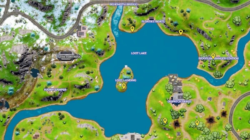 フォートナイトのルートレイク近くに偵察カメラを配備する場所