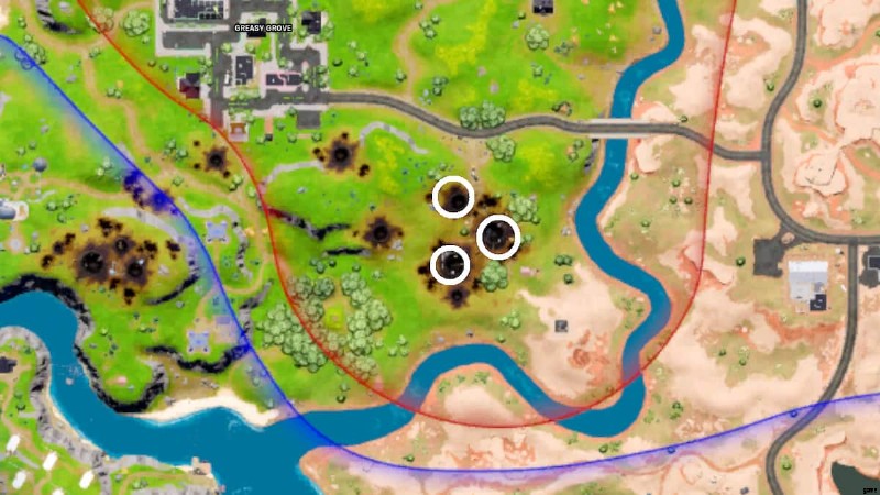 クリスピー クレーター 名前のないランドマークで、Greasy Grove の南東にあります ポイ。第 6 週には、これらのオムニ チップを入手するために、プレイヤーは Seven Outpost II と Tumbledown Temple にもアクセスする必要があります。上の地図画像の白い円をたどって、この地域の 3 つのオムニ チップすべてを見つけてください。