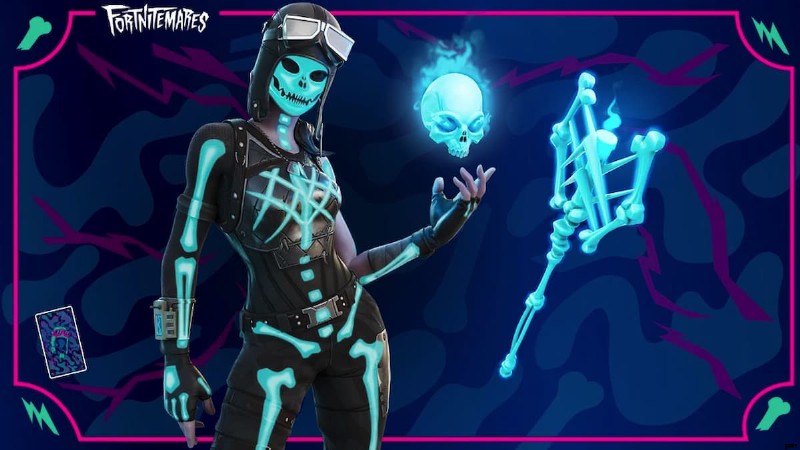 Skeletara は、ゲームに導入されたフォートナイトメアの最も人気のあるスキンの 1 つであり、暗闇で光るネオン ブルーのアクセントで最高のコンボを生み出します。彼女のセットには素晴らしいアクセサリーが付属していますが、スペクトラル スパインはこのスキンを新しいレベルに引き上げます。 1,200 V-Bucks で Cryptic Outfit と一緒にバック ブリンブリンを購入し、800 V-Bucks でぴったりだが簡単な Reaper つるはしでコンボを締めくくることができます。