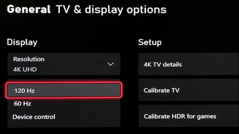 - [テレビとディスプレイ] セクションで、テレビのリフレッシュ レートを 120 Hz に変更します。
