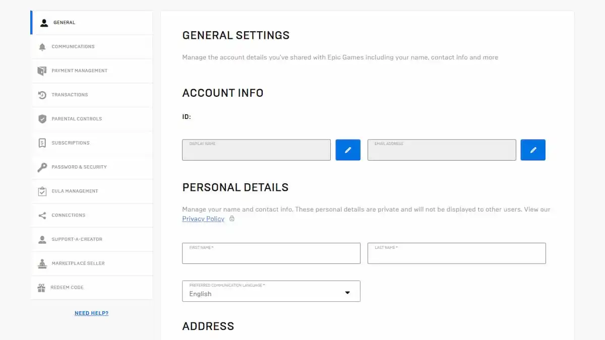 Fortnite で名前を変更するには、Epic Games ストアにアクセスし、任意のブラウザーから Epic Games の Web サイトを開きます。詳細を入力してログインし、右上隅の [アカウント] タブを選択します。 [全般] タブを選択します。ここから、表示名を変更して Fortnite で表示できるようにします。