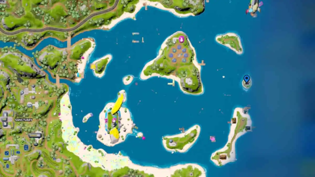 亀の家 島の東にあります エッジ Fortnite チャプター 3 シーズン 3 で。Launchpad ランドマークを泳いで渡らなければなりません カメハウスのある小さな島にたどり着きます。上の地図画像の青いマーカーをたどって、正確な位置を確認してください。プレイヤーは亀の家を訪れて、「慣れ親しんだ訓練場所を訪ねる」を完了する必要があります。 「ドラゴンボールクエスト。このチャレンジを完了するために、他の何人かのプレイヤーがこの場所に着陸することを覚えておいてください。そのため、最初に武器と盾を見つけるのが最善です.