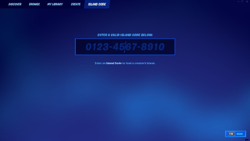 これらのマップをプレイするには、フォートナイトの [発見] タブでコードを入力する必要があります。