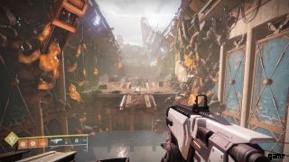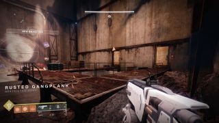 This encounter is fairly easy to understand, but will likely take a little while. There are seven ‘areas’ all scattered across the enormous room. First, head into the small hut on your left and kill the Vandal for his Scorch Cannon. Then get on the platform underneath the big cannon. There's another terminal you need to shoot with the Scorch Cannon to activate it. Then it launches you to another platform.