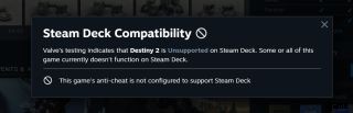 Bungie Web サイトのヘルプおよびトラブルシューティング情報によると、「Destiny 2 は、Windows がインストールされ実行されていない限り、Steam デッキまたは Steam Play の Proton を使用するシステムでのプレイはサポートされていません。