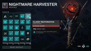 新たに発見されたタンク気味をさらに悪化させることで、ホーンテッドのシーズンは他にもいくつかの強力なヒーリング オプションを提供しました。最も注目すべきは、シーズン アーティファクトの最後の列にある Classy Restoration mod です。それは次のように書かれています:「あなたのソーラークラスの能力を活性化すると、回復が得られます。」 「回復」効果は、時間の経過とともにヘルスとシールドを再生し、重要なことに、ダメージを受けても中断されません。