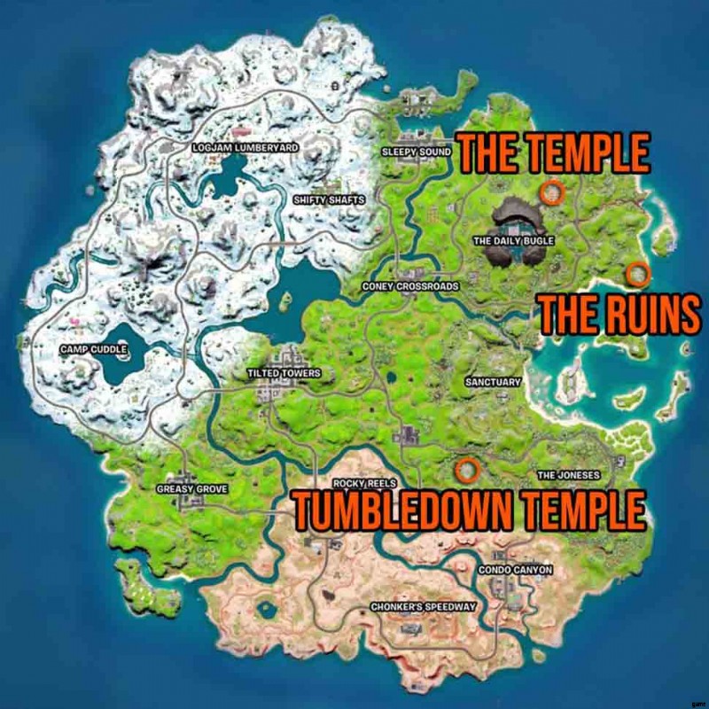 フォートナイトのテンプル、遺跡、タンブルダウン テンプルの場所