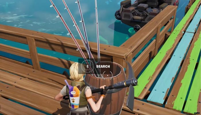 これらの場所のいずれかに到着したら、釣り竿を探します。釣り竿を手に入れるのは難しくありません。いくつかの棒が入った木製の瓶から見つけることができます (下の画像)。ポットを検索すると、釣り竿が見つかります。今度は水の近くに行き、魚を見つけます。魚の群れに向かって釣り竿のロープを投げ、少し待つと魚が釣れます。魚が釣れたら次の場所へ。他の 2 か所で同じプロセスを繰り返し、3 か所で魚を釣ったらクエスト完了です。