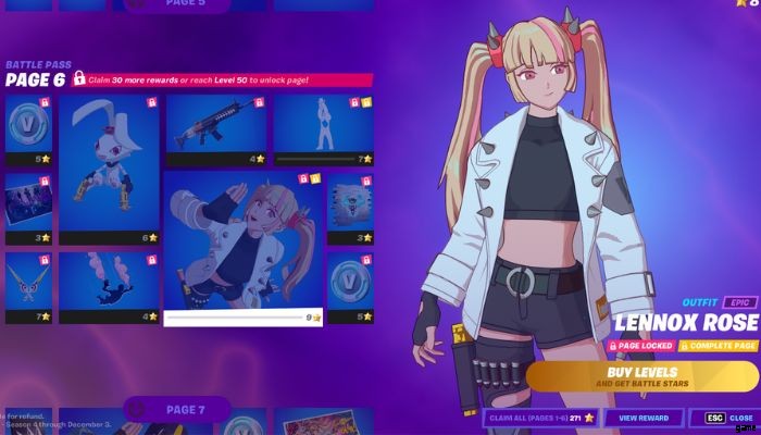 残念ながら、バトル パスを購入した後、最初に入手できるスキンはレノックス ローズではありません。したがって、彼女のロックを解除するには、プレイヤーはレベル 50 までレベルアップするか、下の画像に示すように上部に記載されている報酬を請求する必要があります-
