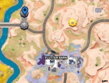 流木は、島の 1 階では見つけることができないランドマークのようなものです。 Flutter Barn の北西の道路から少し離れた正確な場所を知る必要があります。下の青いマーカーは、流木の場所を示しています。