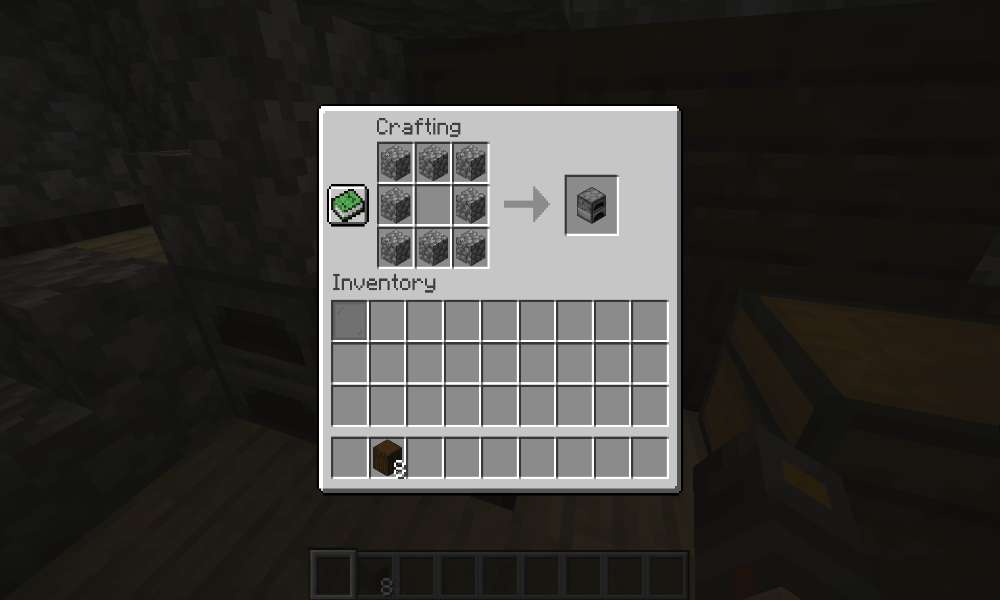 Minecraft でスモーカーを作るには、4 つの木の板と 1 つのかまどが必要で、上記のパターンを使用してそれらをすべて作業台に置きます。かまどには 8 つの丸石が必要です。木の板には、木を切り倒すだけで済みます。