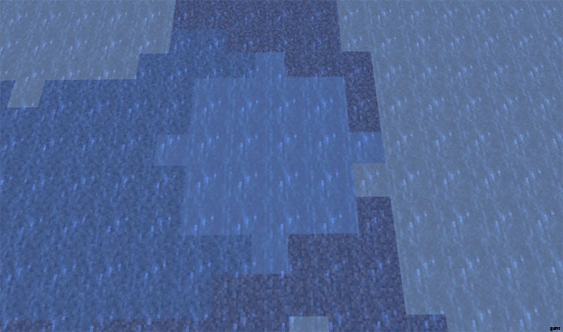 沼地は粘土のスポーンを見つけるのに特に適したバイオームです。粘土は薄い灰色がかった色のブロックです。以下は、水中で見た場合の例です: