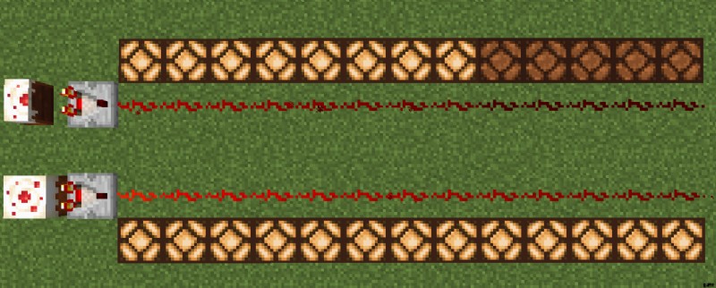 - ジュークボックス: 信号強度は、現在再生中の音楽ディスクによって異なります。最大信号強度 (Pigstep の場合) はジュークボックスにあります) は 13 です。