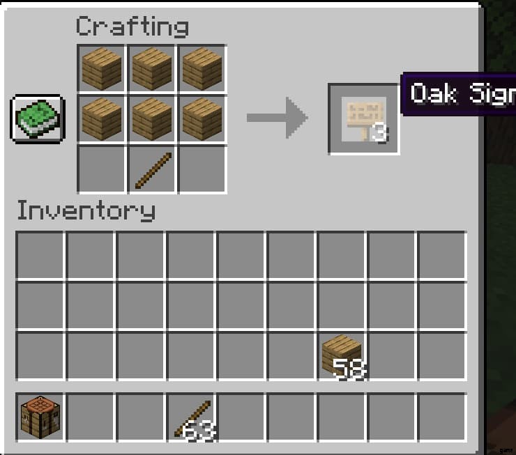Minecraft で光るサインを作りたい場合は、 最初に通常のサインを作成する必要があります。下の図のように、6 枚の木の板と 1 本の棒で看板を作ることができます。