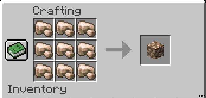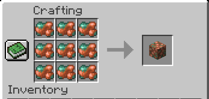未加工鉱石の各ブロックは 9 取ることで作成できます それぞれのリソースの未加工鉱石、およびそれらを各スロットに配置します。これは製作台で行う必要があります。 これは、サバイバル モードでこれらのブロックの 1 つを取得する唯一の方法です。