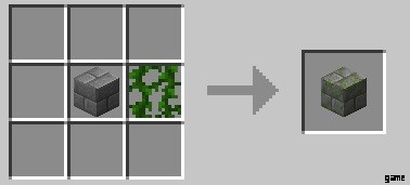 苔むした石レンガを作るには、石レンガが 1 つ必要です。 と つる 1 本 (上の画像を参照)。それは非常に簡単です。 石レンガを入手するには 次のいずれかを実行できます: