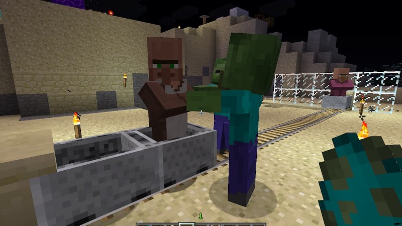 次のステップは、村人を集めることです。サンプル ビルドでは、4 つを集めました。ゾンビと同じように、ボートとトロッコを使って輸送しました。それらは、閉じ込められたゾンビの 8 ブロック以内に配置されます。これにより、彼らはゾンビを「見る」ことができ、アイアン ゴーレムのスポーンを開始できます。