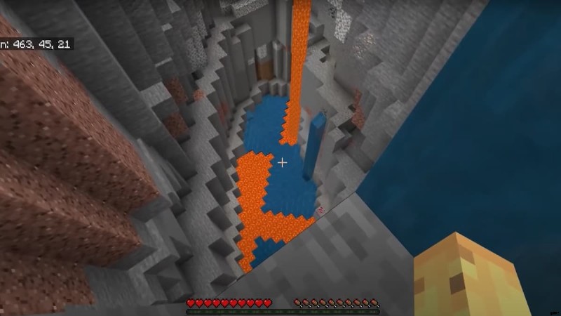 ワールド シード 1350192798 は、スポーン ポイントだけでも最悪のワールド シードの 1 つです。このシードにスポーンされたプレイヤーは、半分が溶岩で半分が水である峡谷でスポーンされます。このため、プレイヤーはすぐに溶岩または水中にスポーンされ、溶岩に向かって押し出されます。